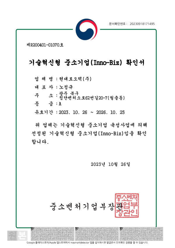 - 다음글경역혁신형 중소기업 확인서 24.01.16
