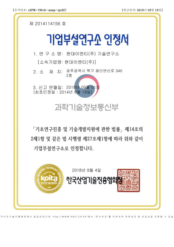 기업 부설 연구소 > 인증서
